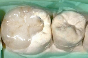 • Porcelánból, amikor a hiányzó fogrészlet teljes mértékben porcelánból készült betéttel kerül pótlásra