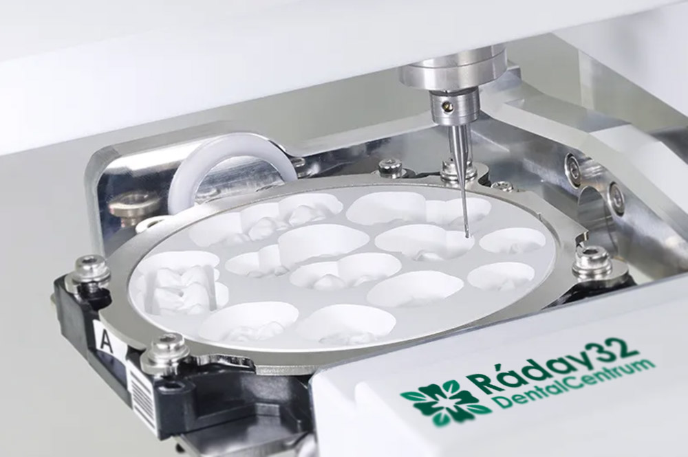 • A digitális tervezés után speciális nagy pontosságú marógépek segítenek a fogpótlások elkészítésében, kifaragásában (CAM)